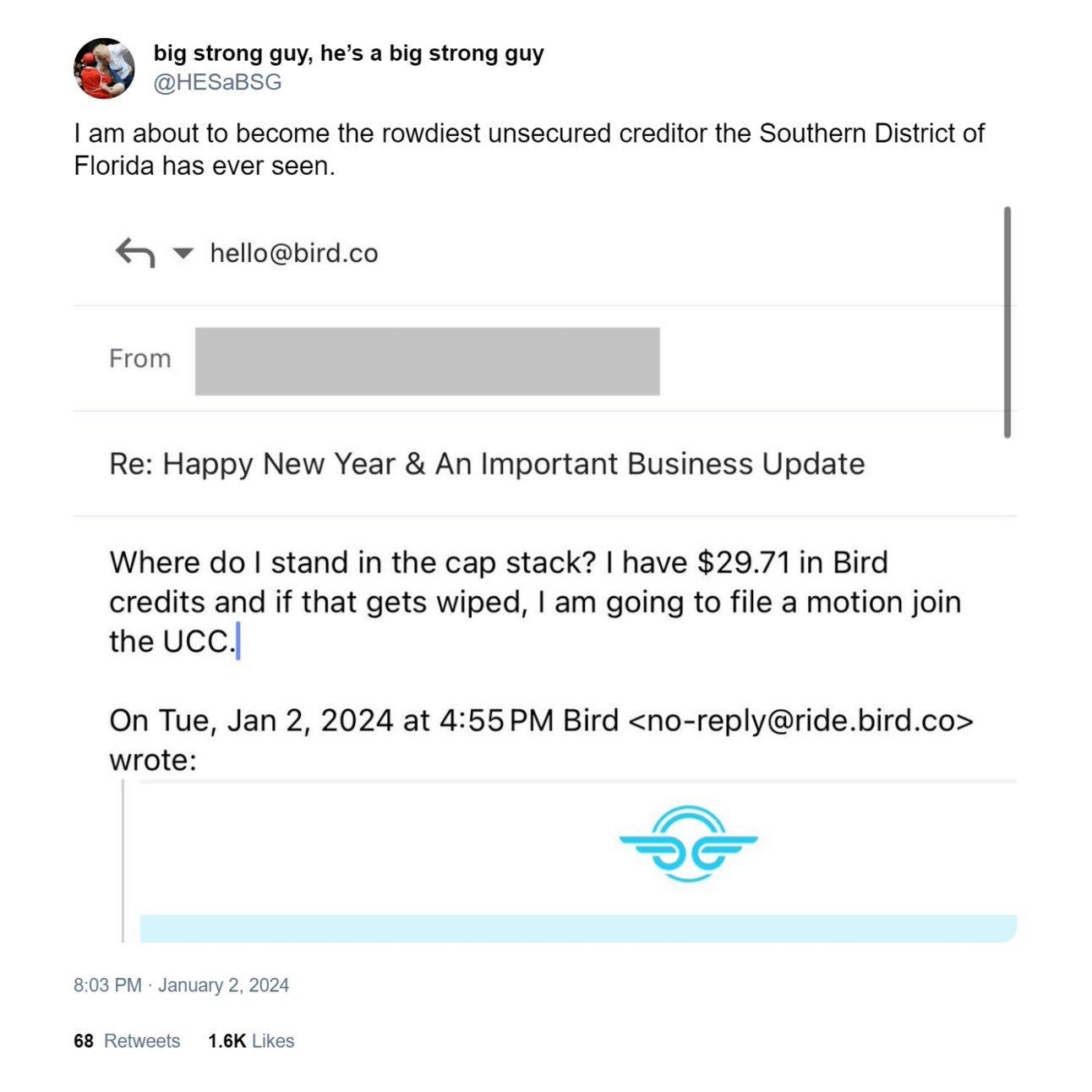 2. Preparation for e-scooter company Bird’s bankruptcy proceedings…