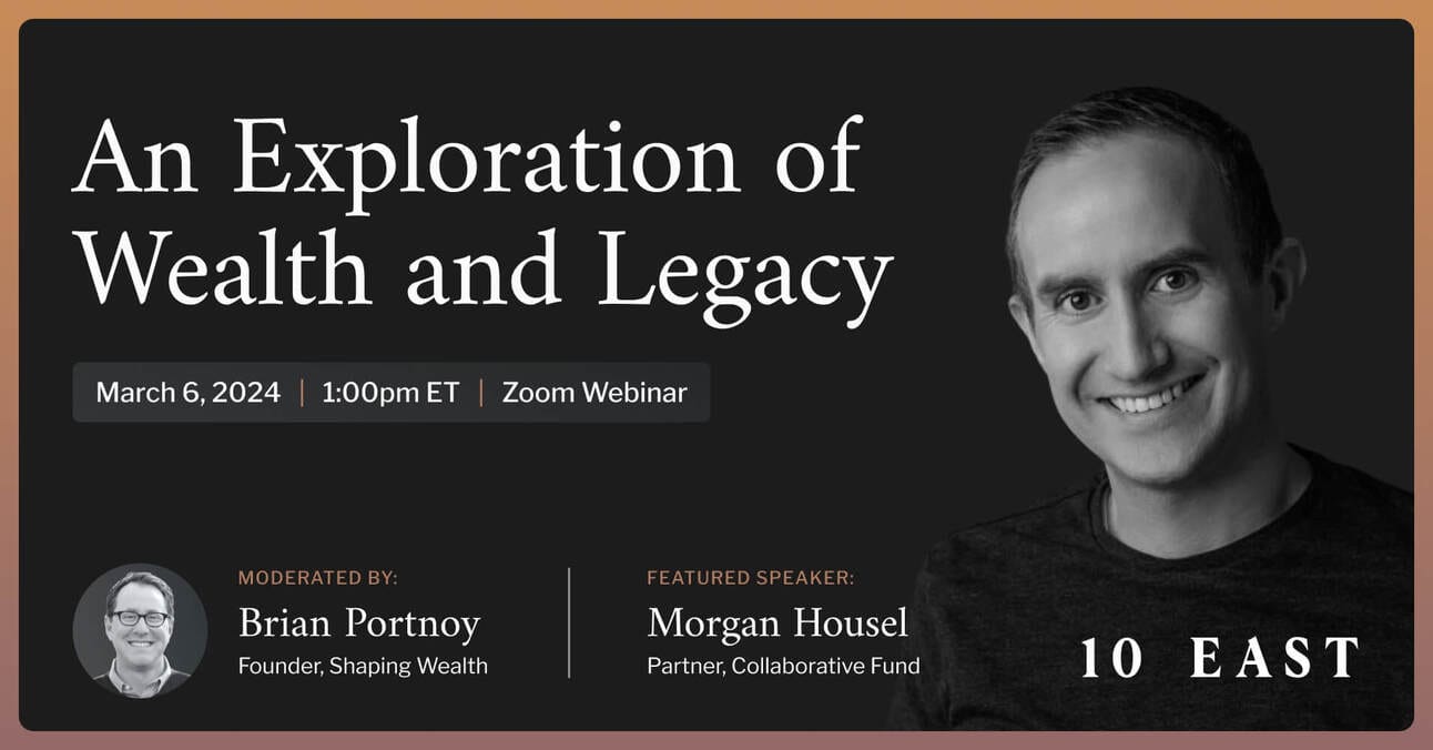 Join 10 East for a discussion with Morgan Housel, the New York Times Bestselling author of The Psychology of Money and Same As Ever, as they delve into legacy, inheritance, and intergenerational family issues.